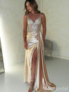Sparkly Champagne V-neck Side Slit Long Prom Dress, Evening Dress, PD3