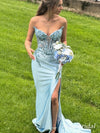 Stunning Blue Lace Appliques Sweetheart Mermaid Prom Dress with Slit, Evening Dress, PD3823045