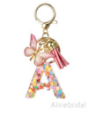 Custom Colorful Initial Keychain with Butterfly & Tassel