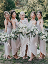 Light Grey Spaghetti Strap High Low Summer Wedding Bridesmaid Dresses, AB4108