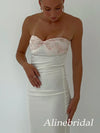 Elegant Ivory Strapless Long Prom Dress with Floral Appliques, Evening Party Dress, PD382282