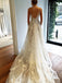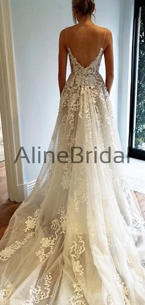 Spaghetti Strap Lace Applique Tulle A Line With Train Long Wedding Dresses, WD1115