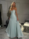 Flowy Blue Off the Shoulder A-line Long Chiffon Prom Dress, Evening Dress, PD3823009