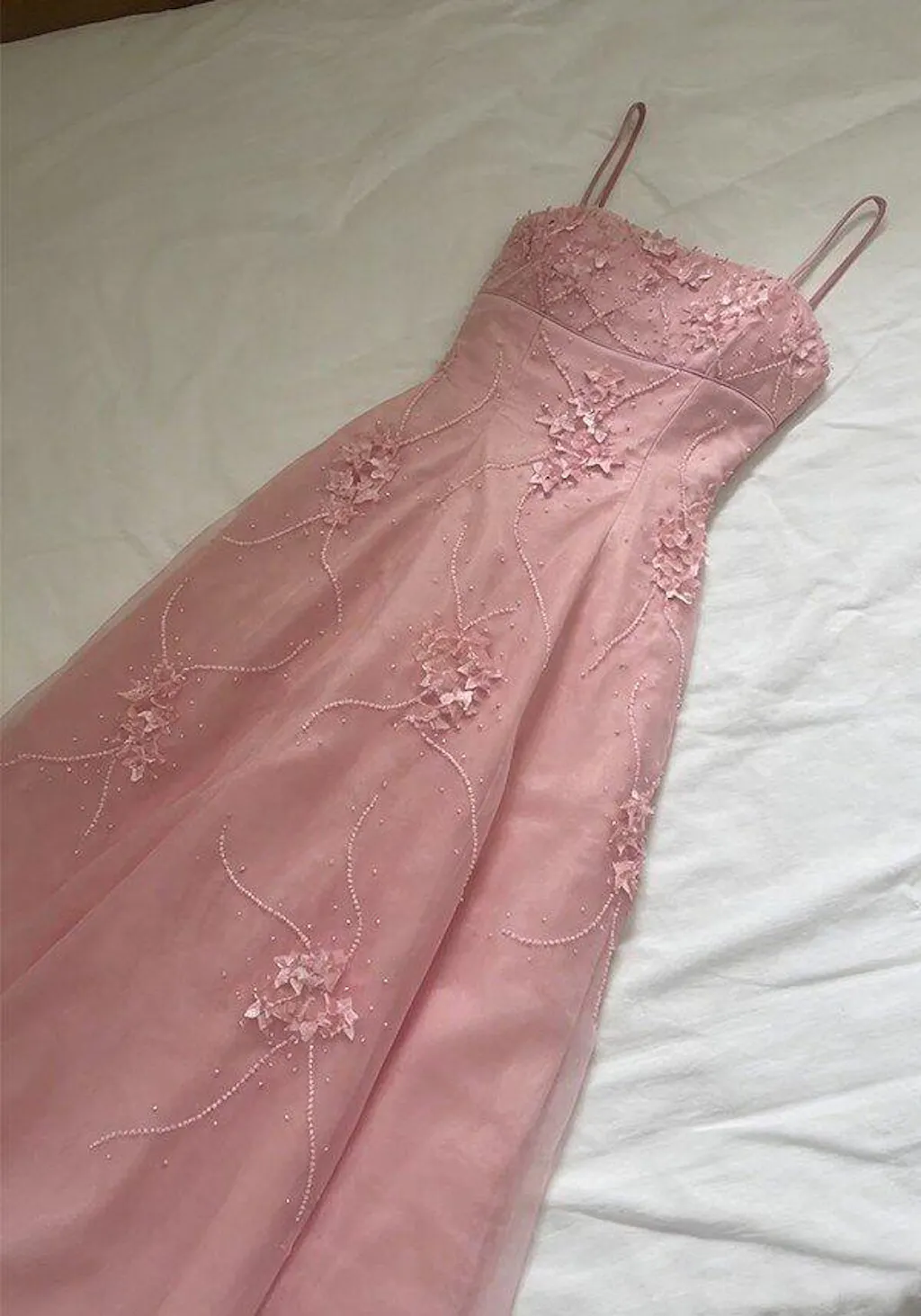 Elegant Pink Floral Appliques Backless A-line Prom Dress, Evening Dress, PD3822994