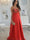 Red Satin Strapless Simple Silt Long Prom Dresses ,PD00169