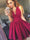 Modern Rose Red V Neck Satin A Line Short Homecoming Dresses, BTW294