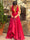 Red Elegant V-neck Sleeveless Side slit A-line Long Prom Dress, PD3631