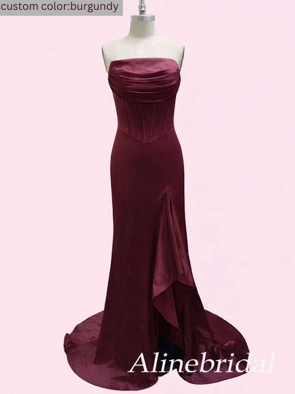 Elegant Yellow Strapless Ruffles Long Prom Dress with Slit, Corset Evening Dresses, PD382266