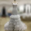 Square Neck Sleeveless Mermaid Lace Tiered Ruffles Organza Train Wedding Dresses , WD0022