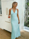 Elegant Blue Halter Satin Long Bridesmaid Dress, PD2823067