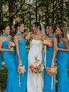 Elegant Blue Strapless Pleated Long Bridesmaid Dress, Maids of Honor Dress, PD2823081