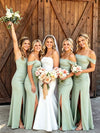 Elegant Green Off Shoulder Pleated Long Bridesmaid Dress with Slit, PD2823080