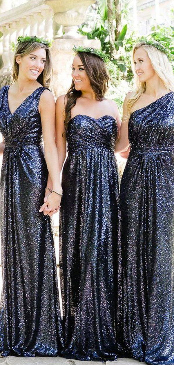 Navy Blue Sequin Sparkly Mermaid Bridesmaid Dresses AB4251
